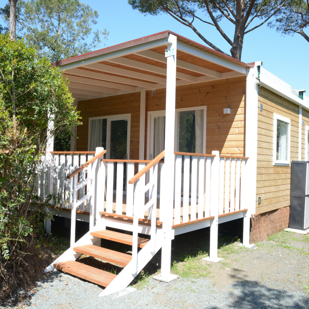 Modern, einladend und funktional bilden unsere Mobilheime ein kleines Dorf, in dem Sie zwischen Amseln, Eichhörnchen und Hasen die Ruhe und Schönheit einer noch nicht kontaminierten Natur atmen können.